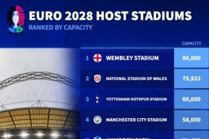 2028年欧洲杯球场容量排名: