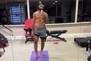 照片中的萨拉赫,身材相当健硕,腹肌棱角分明。