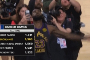 第12个助攻!詹姆斯空接不中但自己前场板 助攻拉拉维亚三分飙进
