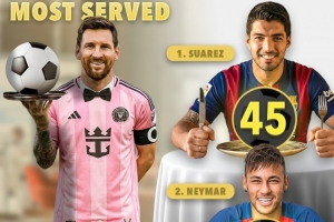体育资讯11月24日讯 美职联比赛,梅西1射3助率领迈阿密4-0完胜辛辛那提,晋级东部决赛。至此,梅西已职业生涯助攻数已达404次。据score90数据统计,在梅西404次助攻中,最大的受益者是苏亚雷斯45次。